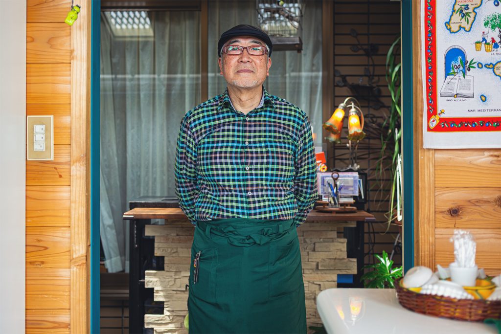 Une passionnée d’oiseaux, Atsuko Ishiyanagi, arborant une broche en forme de flamant rose, se tient devant ses œuvres à Nishi-Ogikubo, Tokyo. Elle peint des oiseaux sur des tiroirs. (2015)Matsuyama-san in his oil store, «Il Regalo Olio» in Suginami, tokyo. (2015)