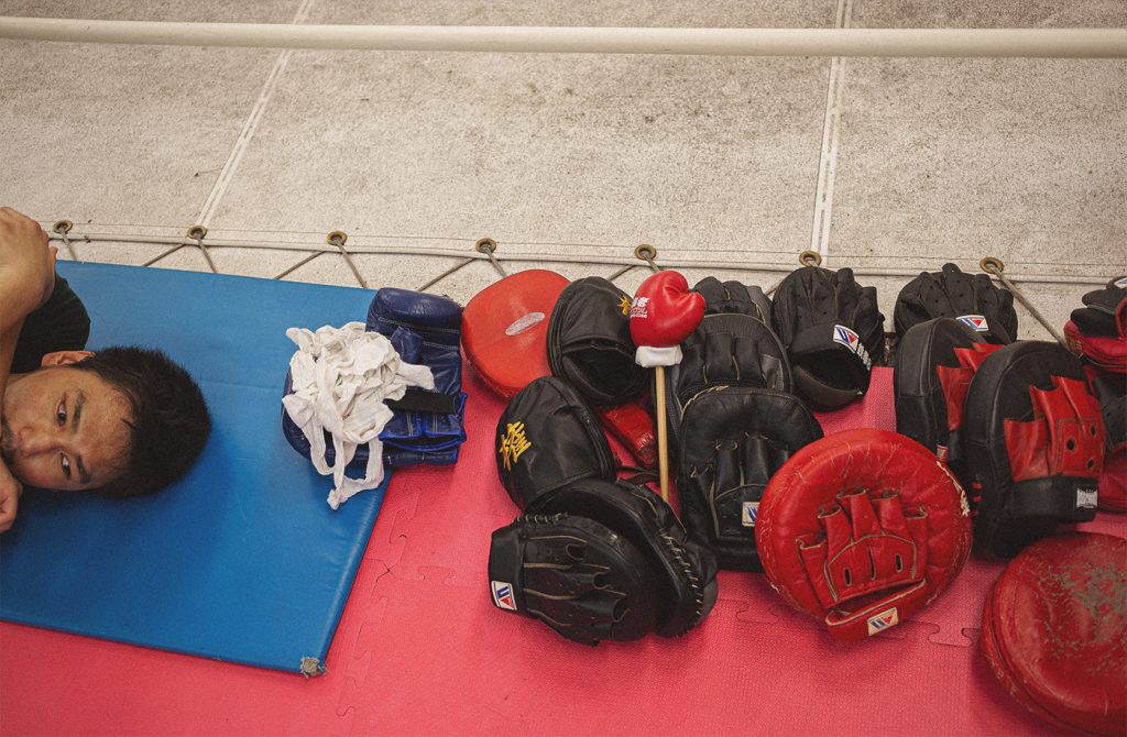 Kon Chorujun, propriétaire de la salle de boxe Tekken8 à Kichijoji, Tokyo, a participé à la conception des combats du manga «Hajime No Ippo». (2015)A regular at the Tekken8 boxing gym. Kichijoji, Tokyo. (2015)